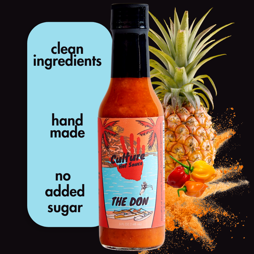 Experience the original Culture Hot Sauce recipe—a classic fusion of sweet pineapple, zesty mustard, and fiery habanero with a signature Szechuan peppercorn tingle. This bold, fiery-orange hot sauce delivers a perfectly balanced heat that lingers just right, making it a fan favorite since day one. Whether you're marinating meats, spicing up tacos, or adding depth to everyday meals, The Don is the ultimate go-to hot sauce.